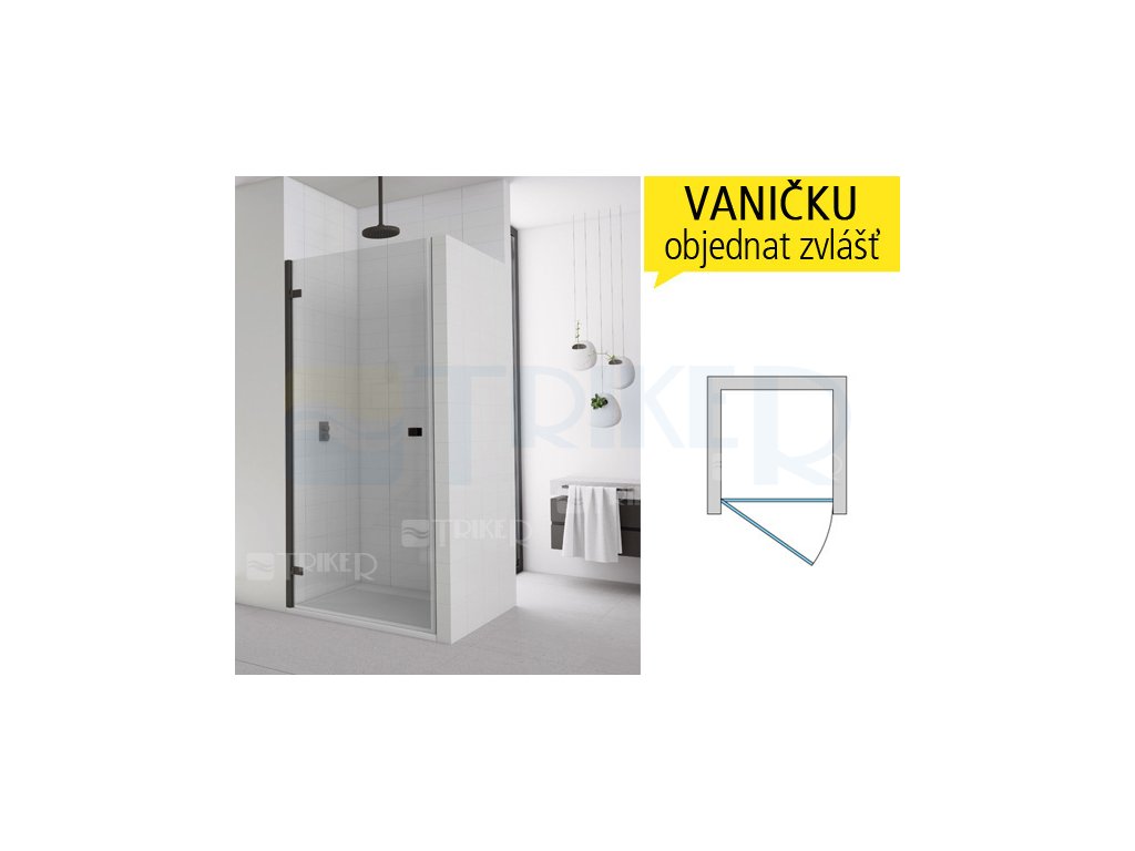 AN1C Sprchové dveře jednokřídlé pravé 900/2000 profil:černá mat, výplň:čiré