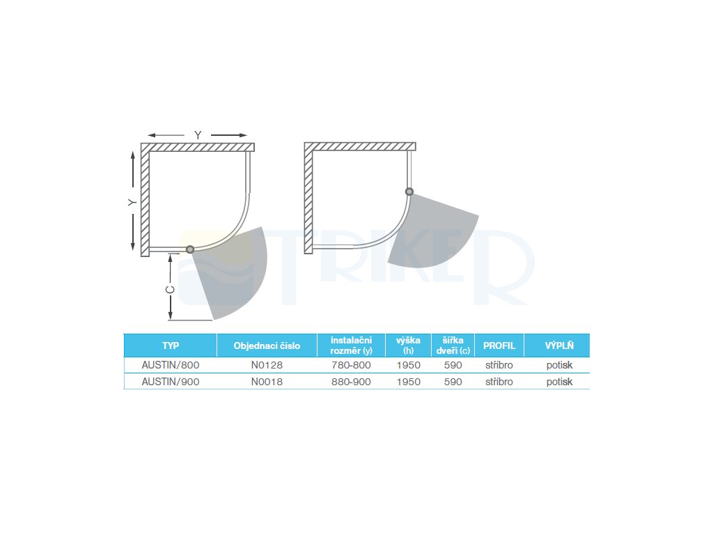 Austin sprchový kout 80 x 80 cm (780-800 mm) R550 profil:stříbro, výplň:transparent