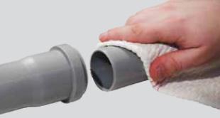 3/ Na rovném konci naneste na úkos originální montážní mazivo a rovnoměrně jej rozetřete (nedoporučuje se používat tuky a oleje na bázi ropných produktů). Těsnící kroužek musí být před zasunutím suchý a bez maziva.