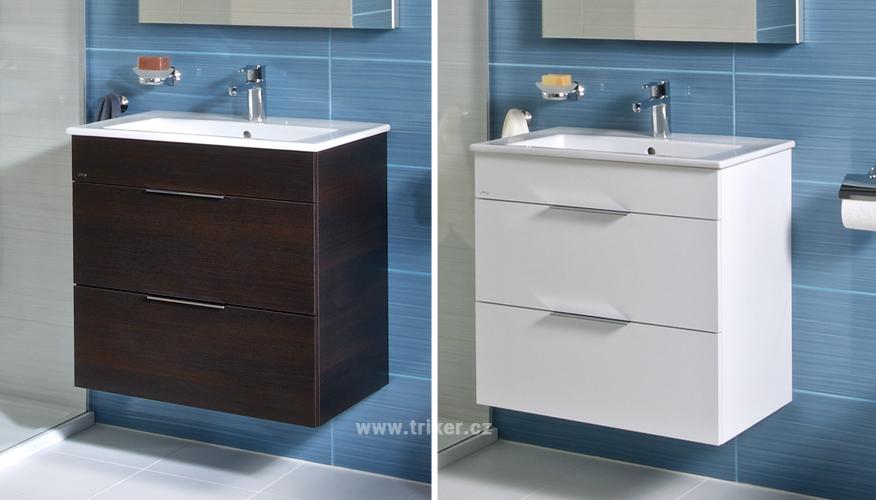 Koupelnové skříňky Jika Cube jsou nabízeny ve dvou barevných provedeních: bílý lak nebo v dekoru tmavý dub.