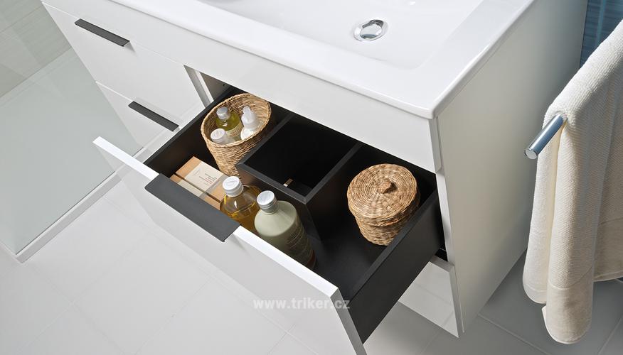Skříňky jsou standardně dodávány s tmavými úchyty. Exkluzivně v Trikeru nabízíme každou variantu skříněk také s úchyty v provedení chrom (doporučujeme zejména u bílé varianty).