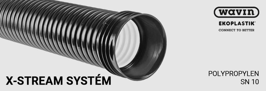Kanalizační systém X-STREAM je vyroben z polypropylenu a je určen k odvádění splaškových a dešťových vod. Systém se vyznačuje kruhovou tuhostí SN 10, čímž je předurčen k použití v místech s velkým statickým či dynamickým zatížením.