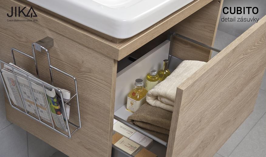 CUBITO - moderní koupelnový nábytek české značky JIKA, který ideálně doplňuje úspěšnou sérii umyvadel a umývátek. Nábytek je nabízen v provedení bílá (lakované čelní plochy, bílý korpus se strukturou dřevního póru), dub a tmavá borovice.
