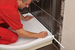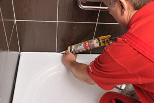3/ Do volné spáry mezi vaničkou či vanou a stěnou naneseme na molitanový pásek silikonový tmel.