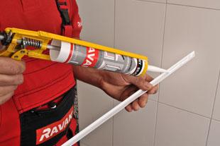 Silikonový tmel RAVAK 310mm, samolepící pásek 2200 mm a 2x krycí liště 6/1200 mm
