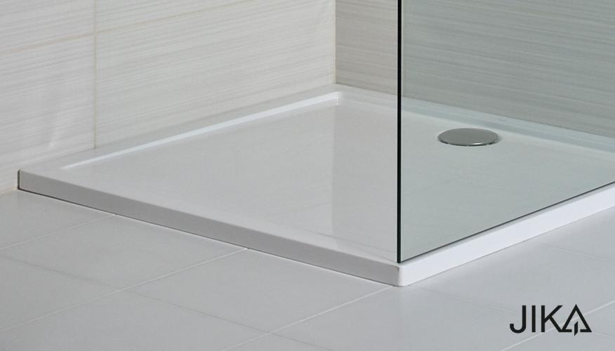 Exkluzivní vaničky z litého mramoru Jika Padana jsou vysoké pouze 3 cm a jsou proto vhodné nejen pro posazení na podlahu, ale také pro zabudování do podlahy.