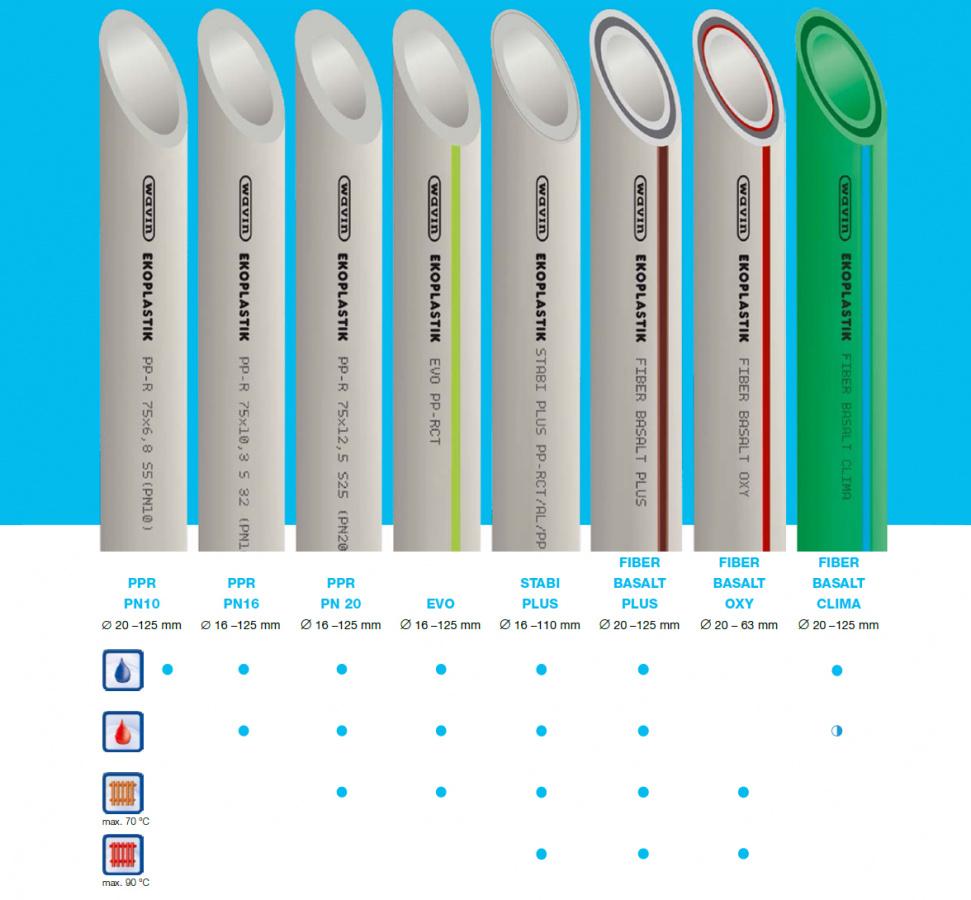 Přehled trubek PPR a PP-RCT v nabídce Triker: