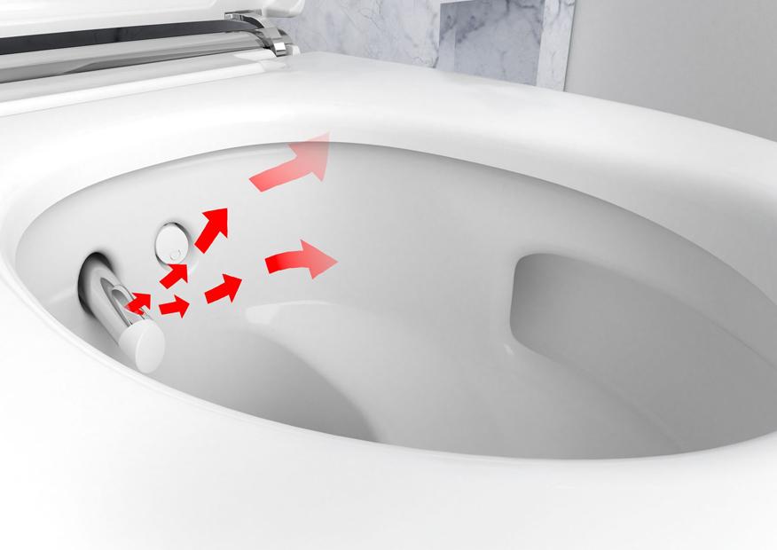 Automaticky aktivované, velmi tiché odsávání odstraňuje nepříjemný zápach přímo v místě, kde vzniká, tedy v keramické míse. Odtud se znečištěný vzduch odvádí a čistí pomocí keramického voštinového filtru s dlouhou životností.