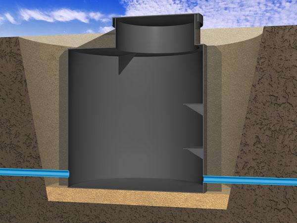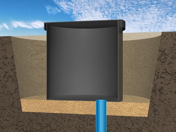 Osazení šachty probíhá do předem připraveného výkopu, jehož dno je buďto zhutněno štěrkopískem, nebo vybetonováno do výše 5cm. Po usazení se nádoba obsypává zeminou z výkopu bez větších rázů, ale mírným zhutněním. Před obsypáním šachty je nutné protáhnout připravenými vodotěsnými prostupy vodovodní potrubí. Vodoměr je možné osadit až po obsypání.