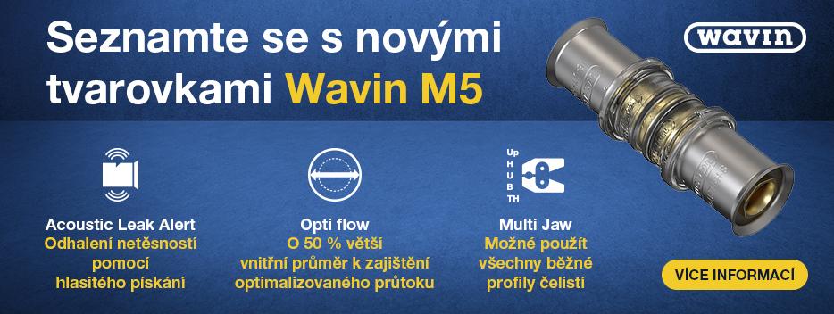 Systém Wavin M5 je nejnovější řada lisovacích mosazných tvarovek a vychází z již osvědčených lisovacích tvarovek Wavin K1 (K-press) a Wavin M1 (M-press).