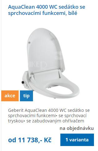 Pokud jste ale skutečný „toaletní fajnšmekr“, který se spokojí jen s tím nejlepším, máme dokonalý typ i pro vás. Například Geberit bidetovací sedátko AquaClaean 4000 je pro každého, kdo chce okamžitě přeměnit své stávající WC na moderní sprchovací toaletu. Elegantní bidetovací sedátko, které se jednoduše instaluje, má pro intimní hygienu jemný a vzdušný vodní proud o teplotě těla díky zabudovanému ohřívači vody. Samozřejmostí je i nastavitelný tlak sprchovacího proudu. Sprchovací tryska je vybavena automatickým předčištěním a dočištěním, takže voda z trysky bude vždy perfektní. U takového sedátka nesmí chybět (a také nechybí) mechanismus plynulého sklápění.