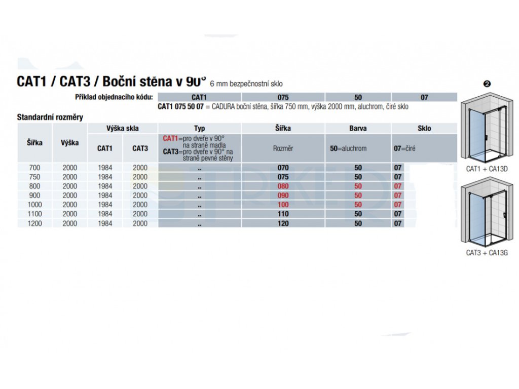 CAT3 boční stěna 800/2000 profil:aluchrom, výplň:čiré sklo