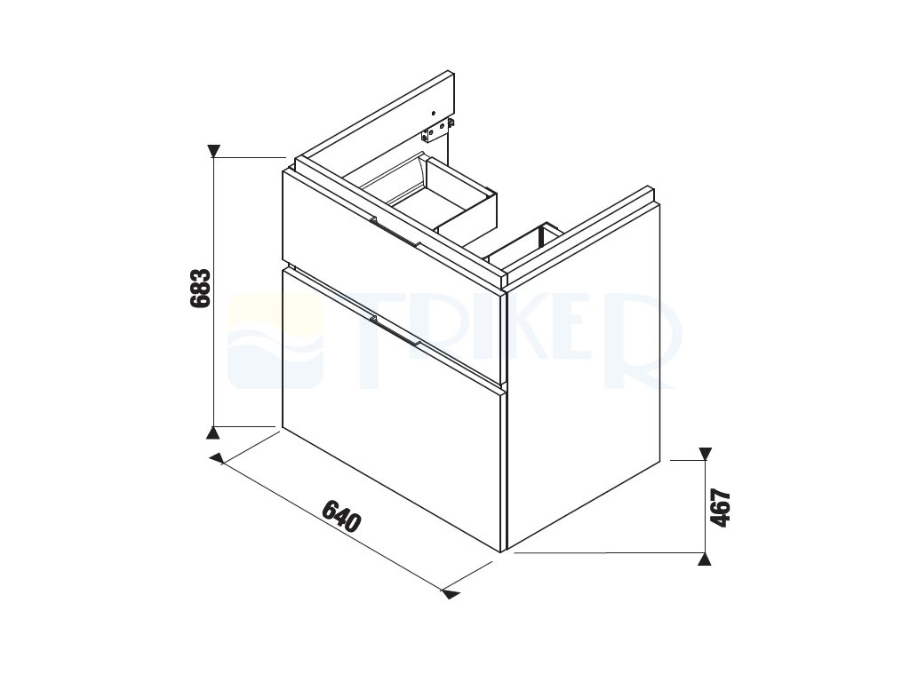 - rozměr šířka 640 mm, výška 683 mm, hloubka 467 mm