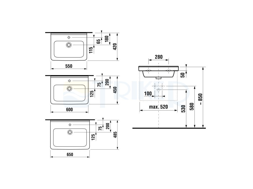 Cubito umyvadlo 65 x 48,5 cm bez otvoru, bílé