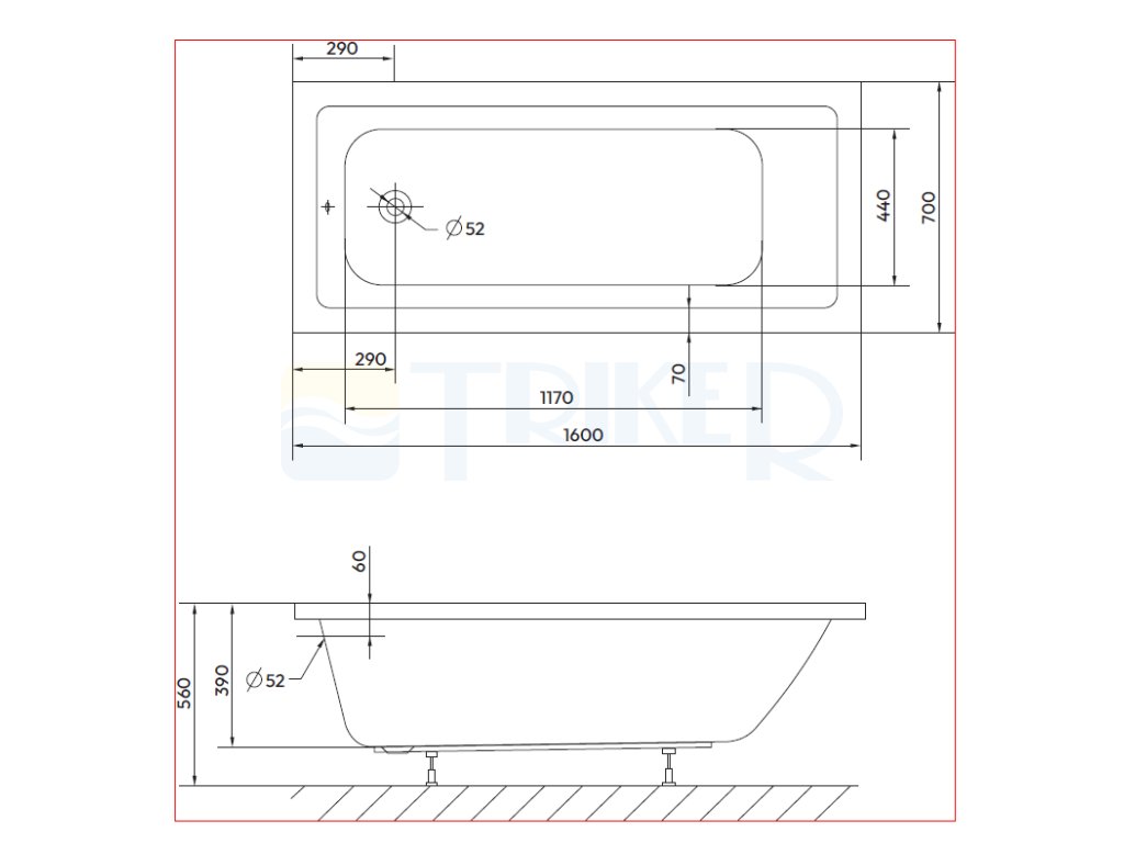 Akrylátová vana o rozměru: 1600x700x420 mm
