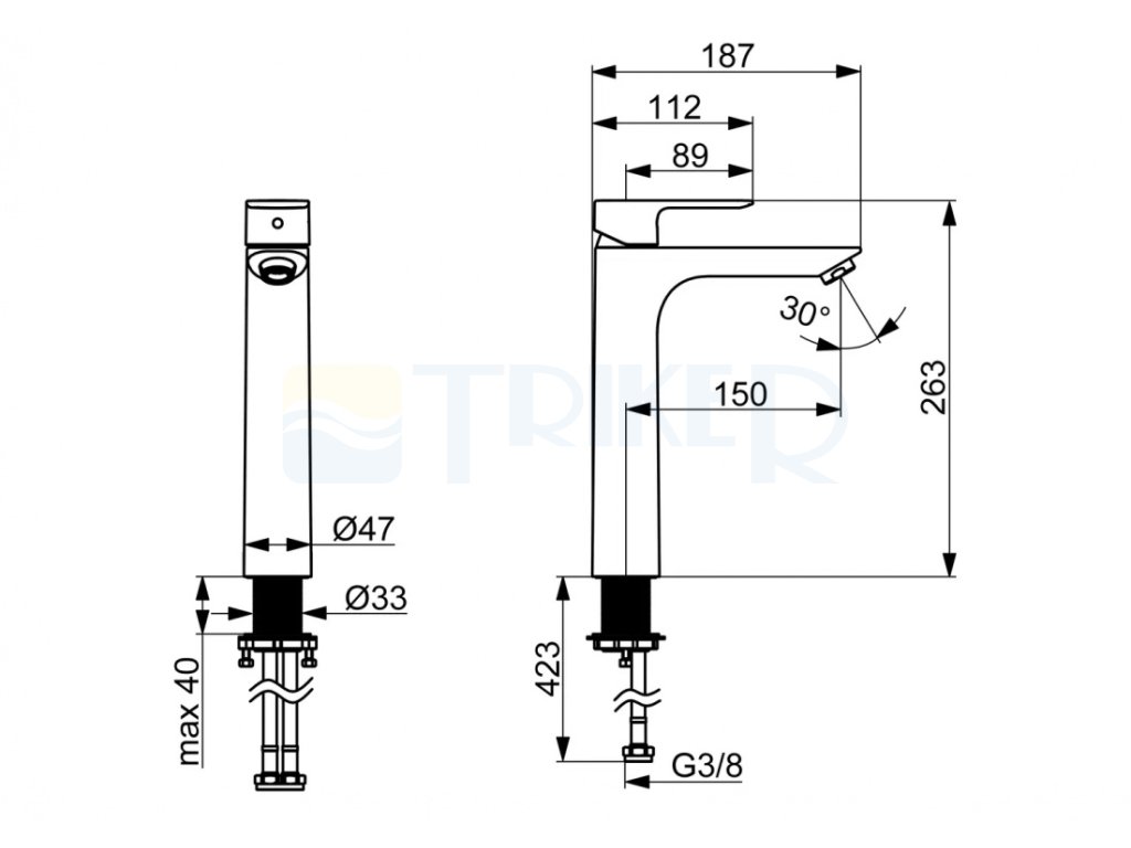 - Bez odpadní soupravy, bez otvoru na táhlo