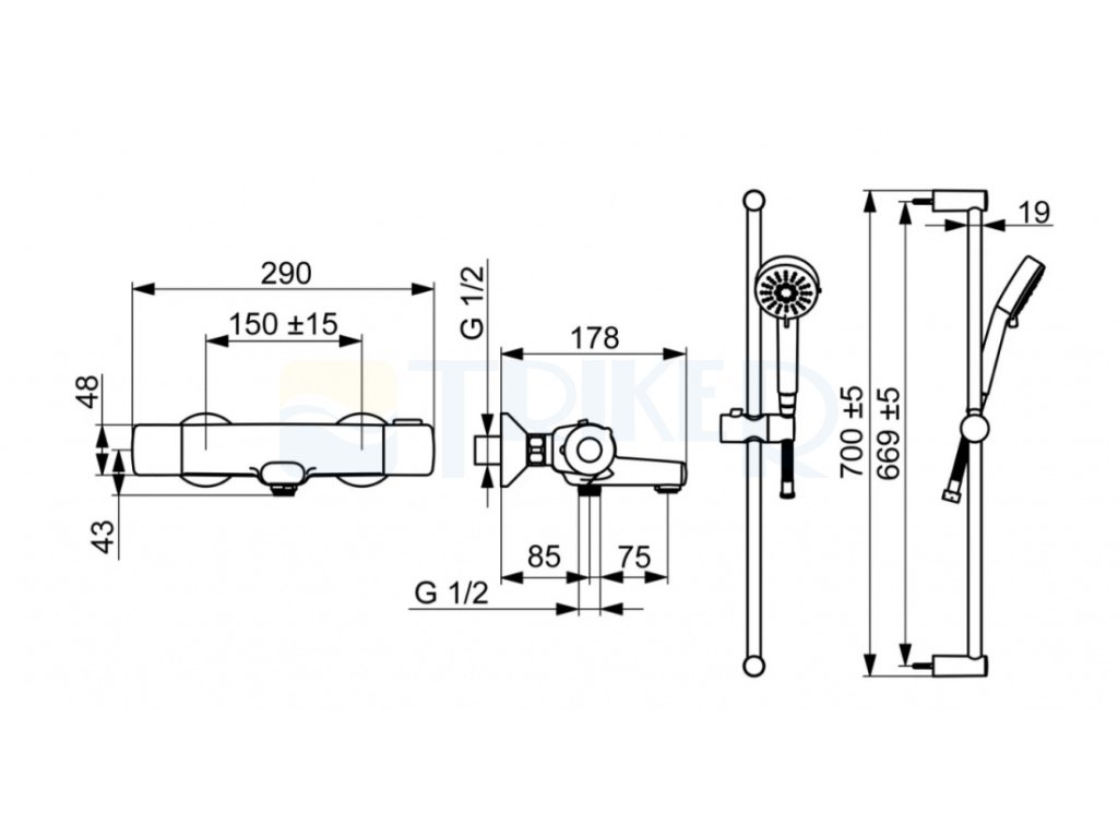 - ruční sprcha 3polohová: normální proud, osvěžující proud, relaxační proud