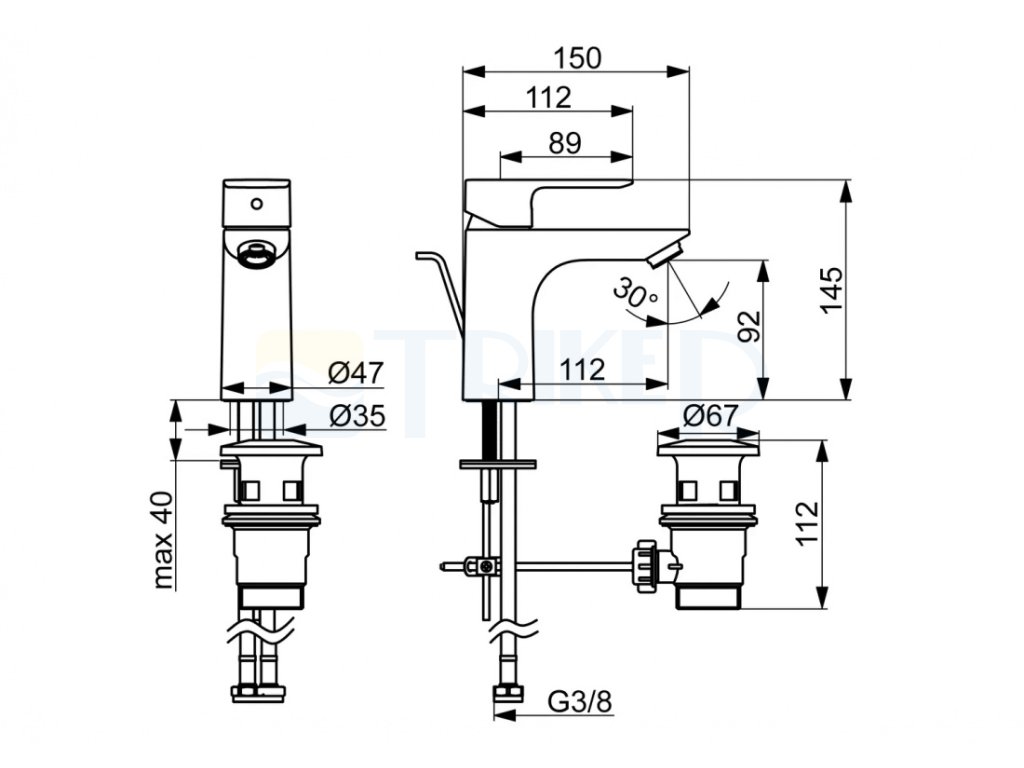 - ø 35 mm keramická kartuše pro ovládání teploty a průtoku vody