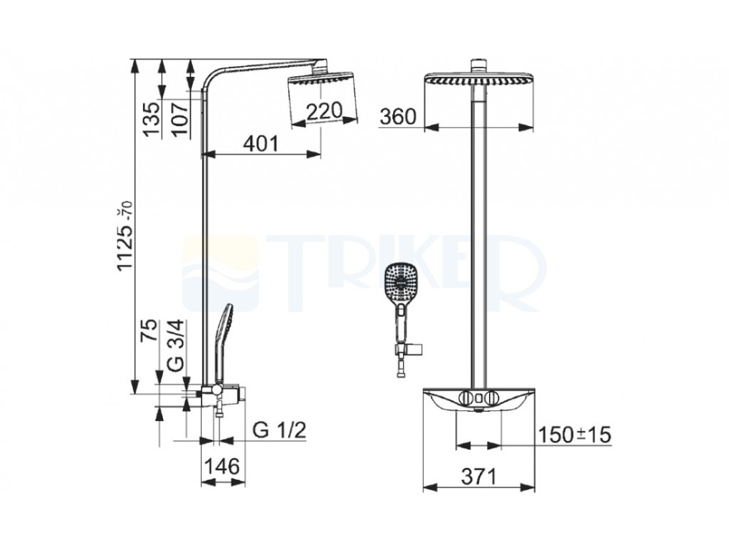 • hlavová sprcha 360 × 220 mm