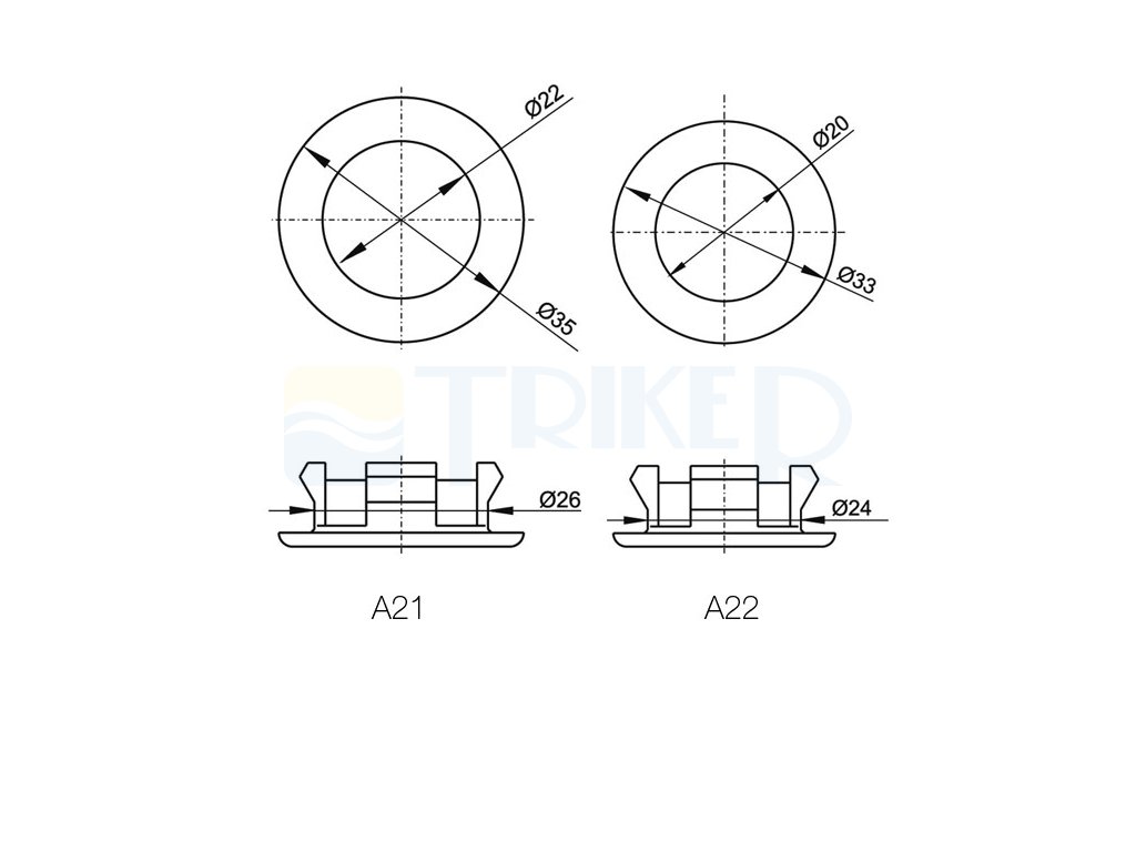 • plastová krytka pro vložení do kulatého přepadu umyvadla