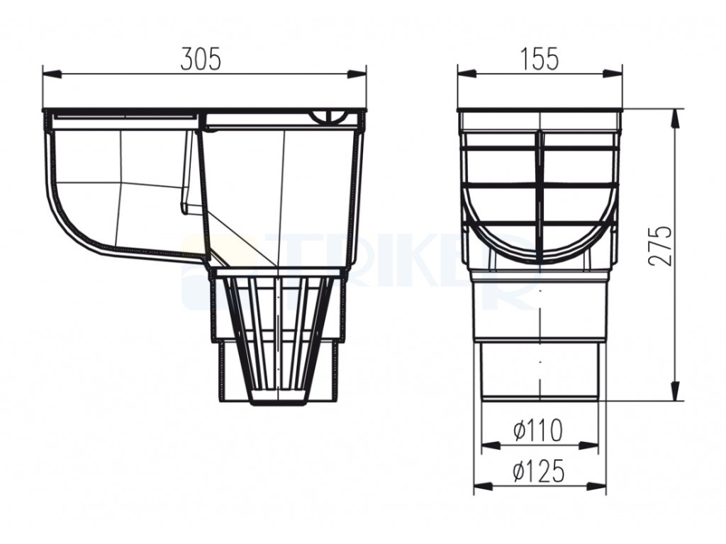Chuděj - Lapač střešních splavenin KV 110/125 UNIVERZÁLNÍ - spodní