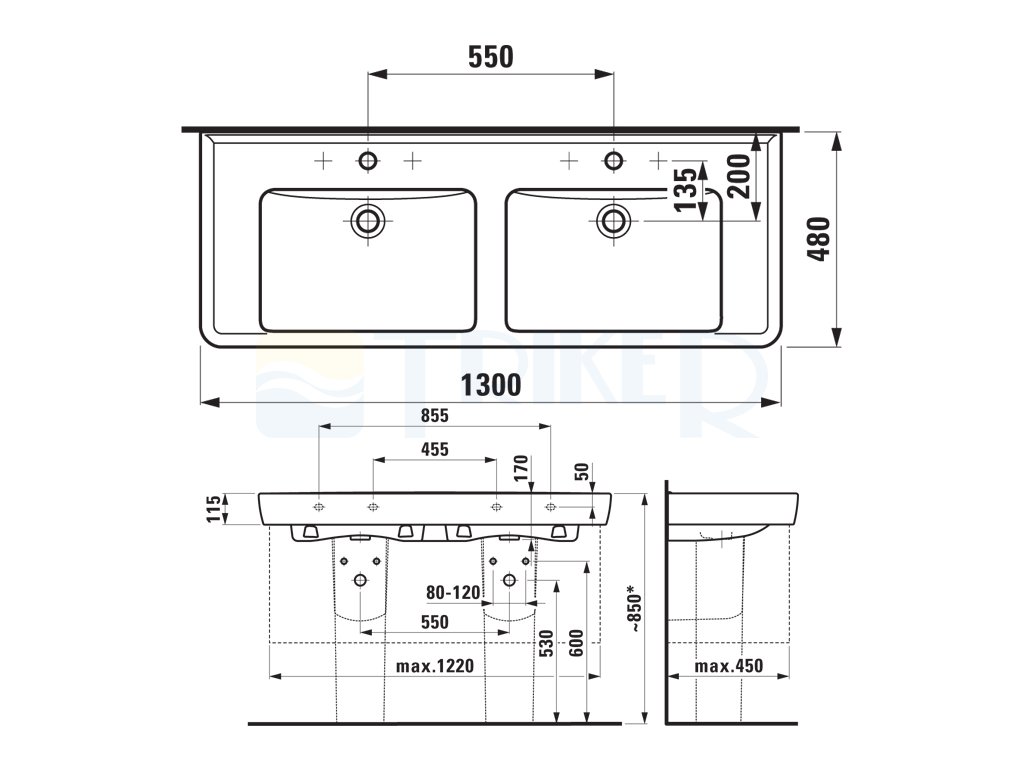 Laufen Pro A dvojumyvadlo 130 x 48 cm
