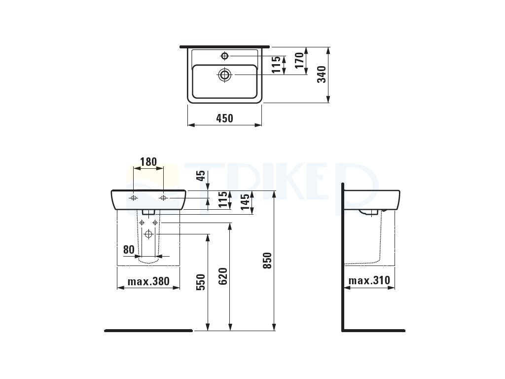 Laufen Pro A umývátko 45 x 34 cm bez otvoru bílé