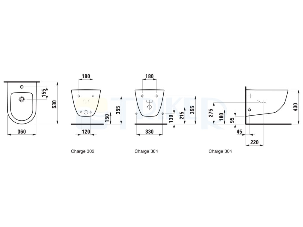 Laufen Pro bidet závěsný 53 cm kapotovaný s otvorem pro baterii, s postranními otvory, bílý+LCCA