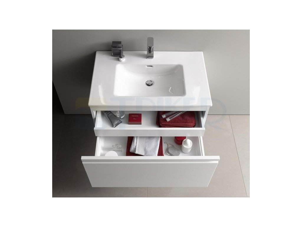 Umyvadlová skříňka, která se dá lehce namontovat na zeď. Spodní okraj umyvadla je glazovaný a tvoří tak krásný detail, který oceníte. Provedení celé skříňky je v bílém lesku a působí velice elegantně a nadčasově. Uvnitř zásuvky najdete ještě jednu malou zásuvku, která vám dodá zase o něco více úložného prostoru. Obě zásuvky disponují systémem Softclose. Podívejte se do naší další nabídky a vyberte si k umyvadlu baterii, které dotvoří celkový efekt.