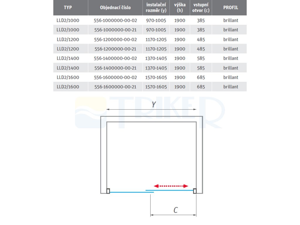 LLD2 sprchové dveře posuvné do niky LLD 2/1600 (1570-1605mm) profil:brillant, výplň:transparent