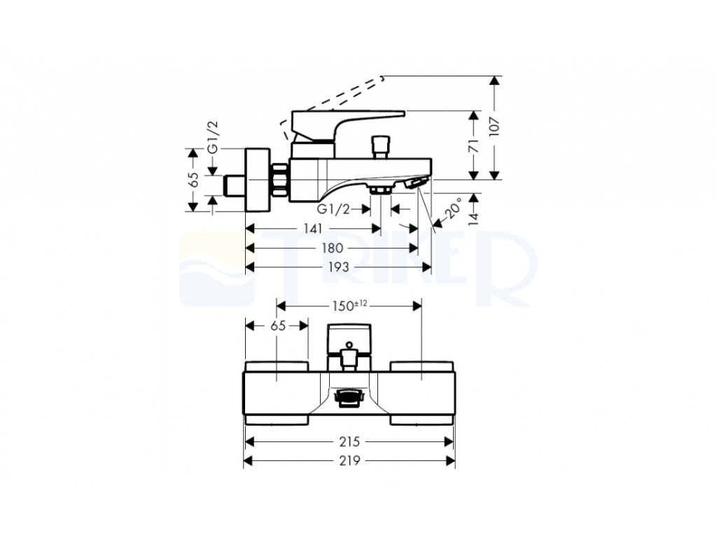 Hansgrohe Metropol vanová nástěnná baterie s plnou pákou