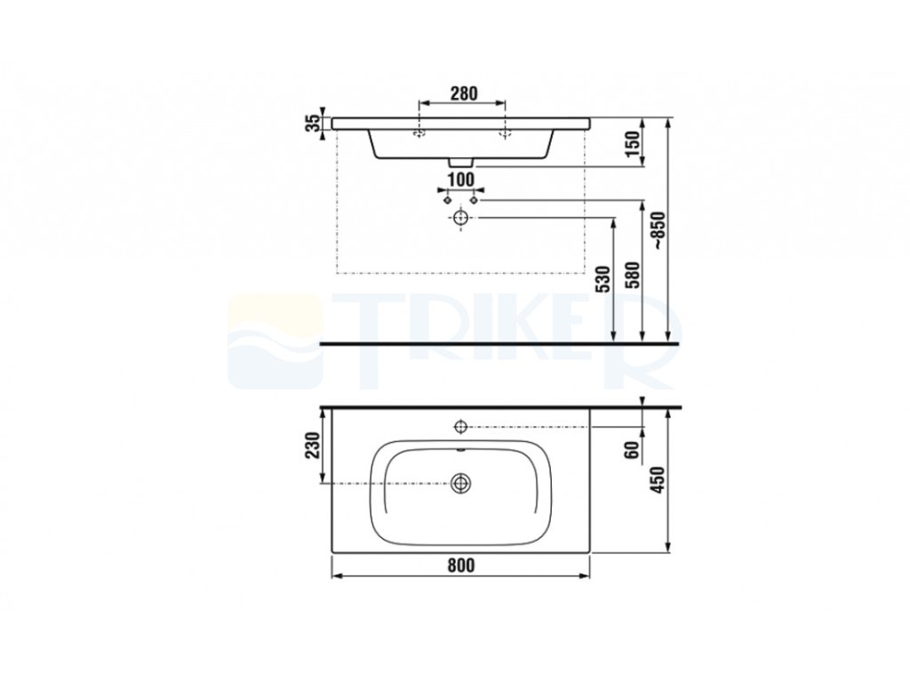 MIO-N umyvadlo 80 x 45 cm s otvorem pro baterii, bílé