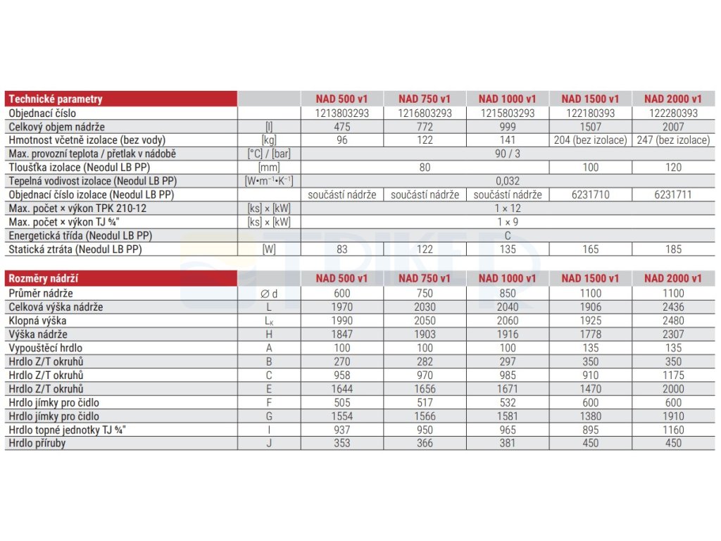 - Nádrže NAD 500-1000 a NADS jsou dodávány včetně snímatelné izolace 80 mm