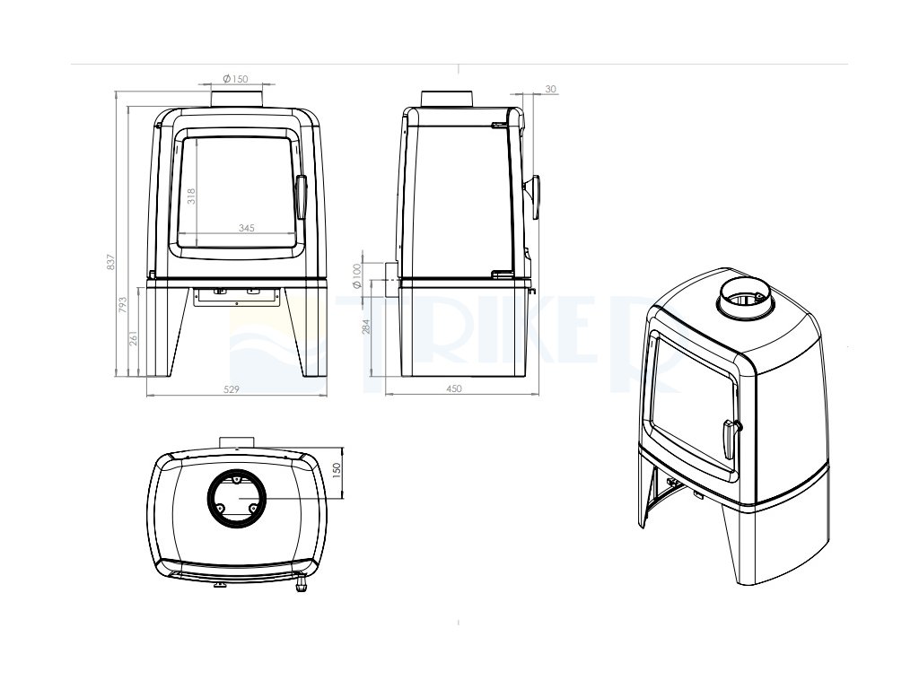 průměr odvodu spalin: 150mm