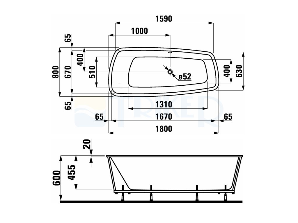 Palomba vana akrylátová s konstrukcí 180 x 80/2 cm okraj bílá