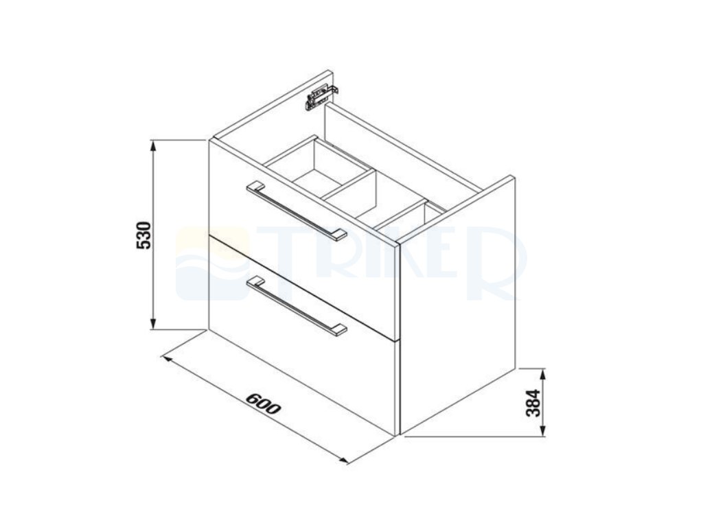Koupelnová skříňka s umyvadlem nabízí praktické a elegantní řešení pro moderní koupelny. Díky závěsnému provedení působí lehce a zároveň usnadňuje úklid podlahy. Skříňka je vybavena dvěma zásuvkami, které poskytují dostatek prostoru pro uložení kosmetiky, hygienických potřeb i drobných doplňků.