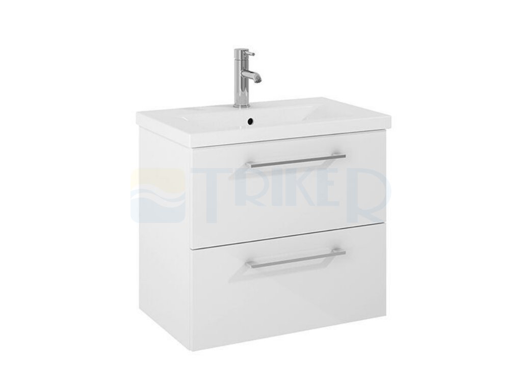 Součástí sestavy je keramické umyvadlo s otvorem pro baterii. Bílé lesklé provedení je nadčasové, snadno se kombinuje s ostatním koupelnovým vybavením a hodí se do menších i prostornějších koupelen. Díky dostupnosti rozměrů 50, 60 a 80 cm si lze vybrat ideální variantu podle velikosti prostoru.