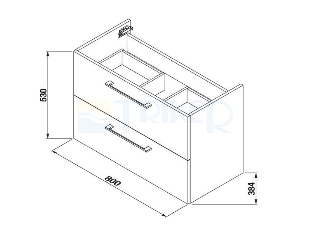 Koupelnová skříňka s umyvadlem nabízí praktické a elegantní řešení pro moderní koupelny. Díky závěsnému provedení působí lehce a zároveň usnadňuje úklid podlahy. Skříňka je vybavena dvěma zásuvkami, které poskytují dostatek prostoru pro uložení kosmetiky, hygienických potřeb i drobných doplňků.