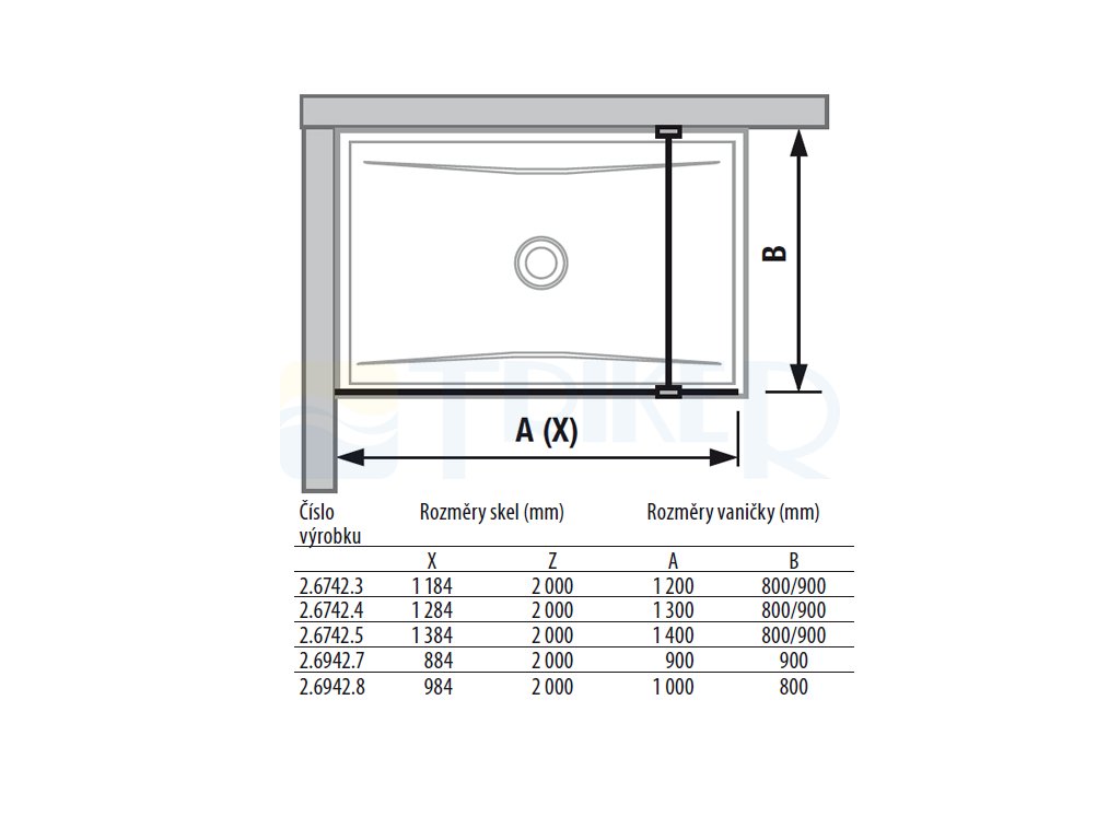 • pro sprchové vaničky 90, 100, 120, 130 nebo 140 cm