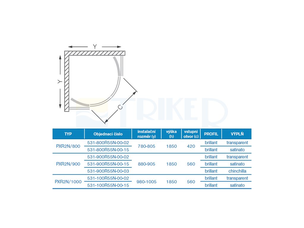 PXR2N sprchový kout PXR2N/1000 R550 (980-1005mm), výška 1850mm, profil:brillant, výplň:transparent