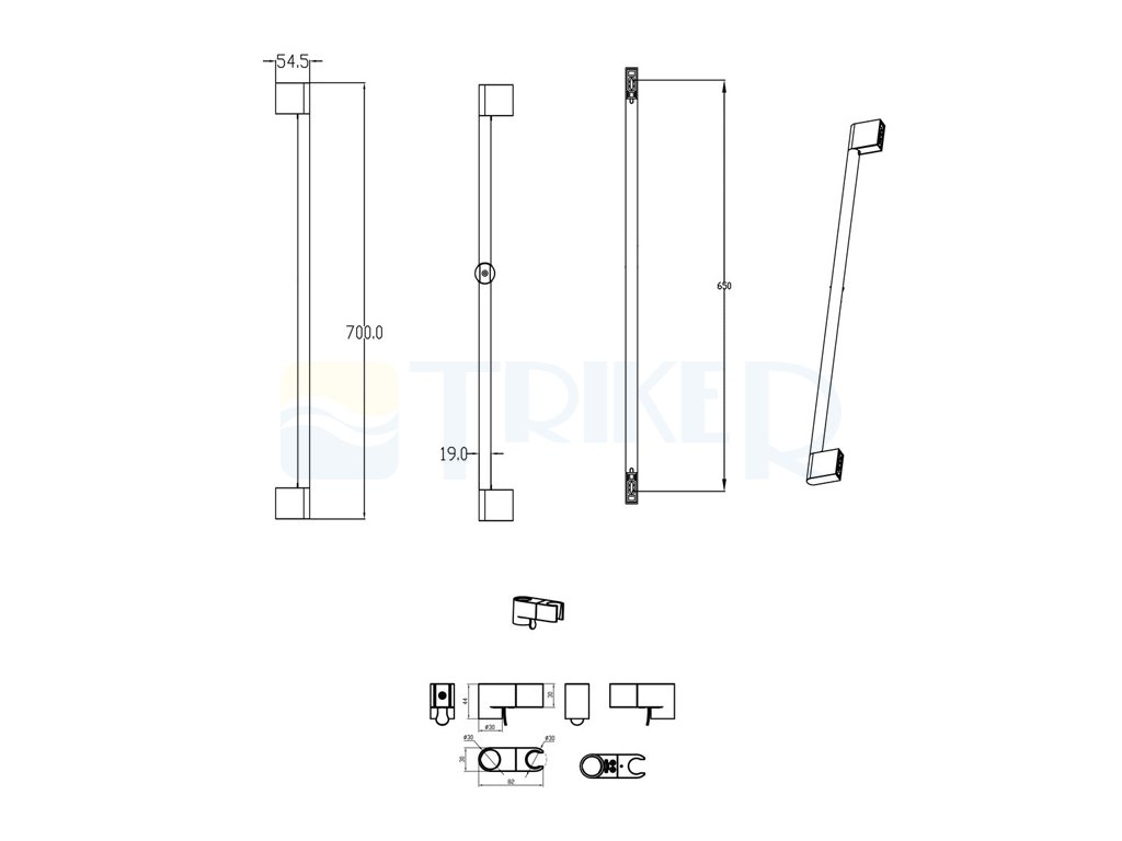 Ravak tyč s posuvným držákem sprchy 60 cm 974.00 chrom