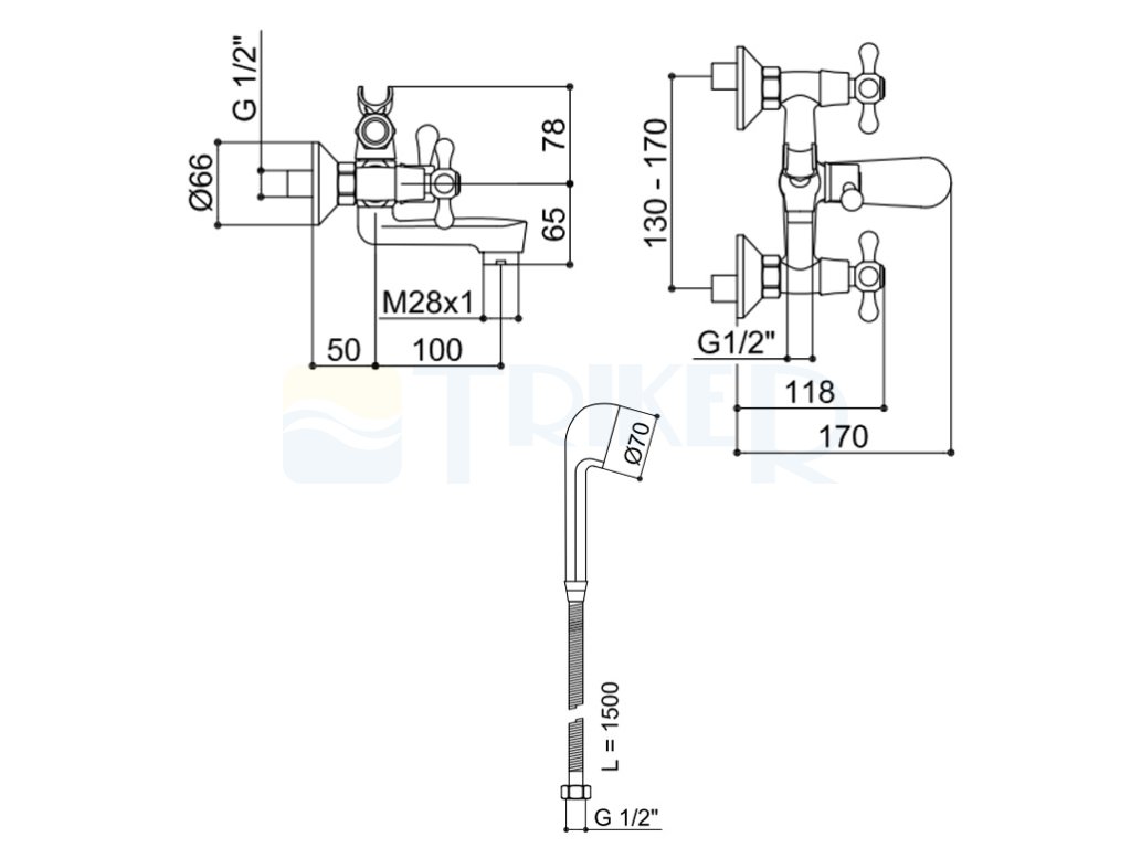 • s ruční sprchou, hadicí 150cm a držákem na sprchu