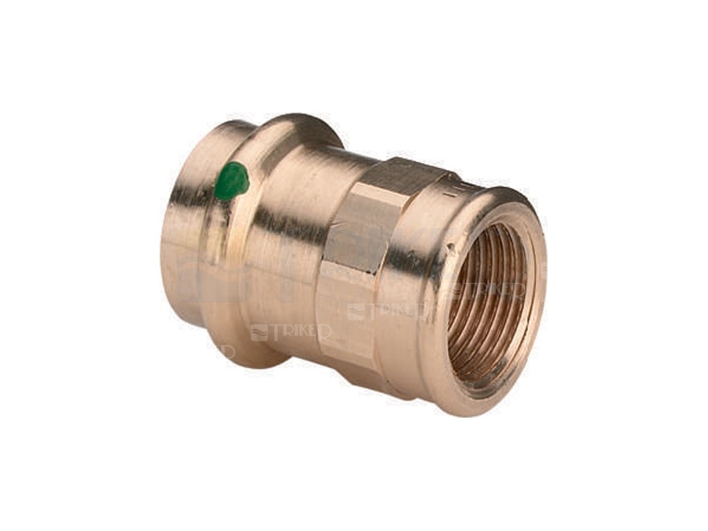 Viega - Sanpress lisovací přechodka s vnitřním závitem z červeného bronzu pro spojování měděných trubek.