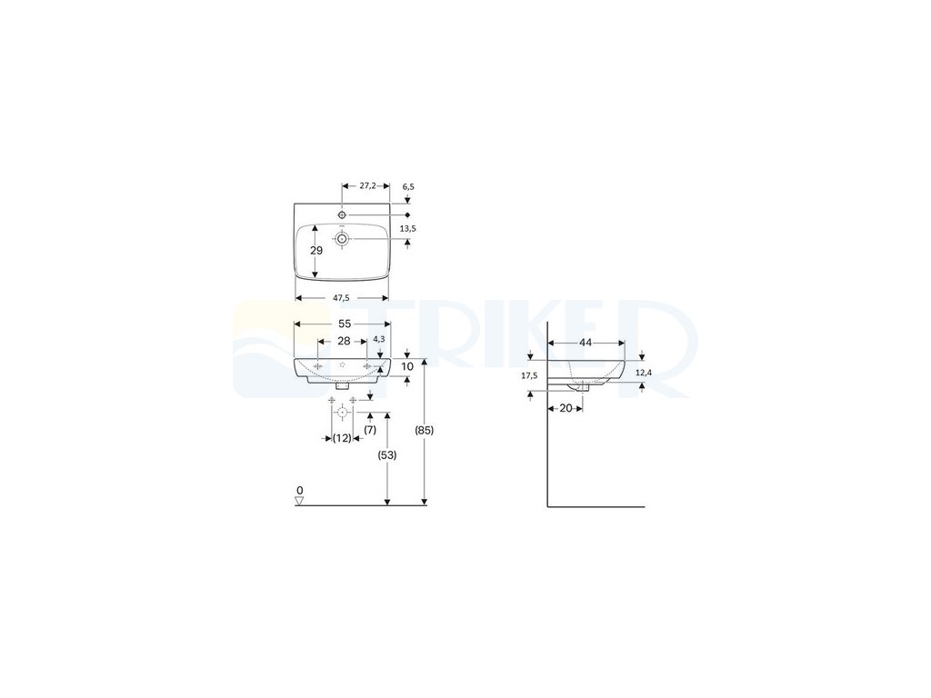 Selnova Square umyvadlo 55 x 44 cm bez otvoru pro baterii, bílé