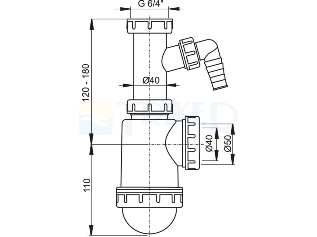 Sifon dřezový bez výpusti s přípojkou A443P 6/4" x 40/50 mm