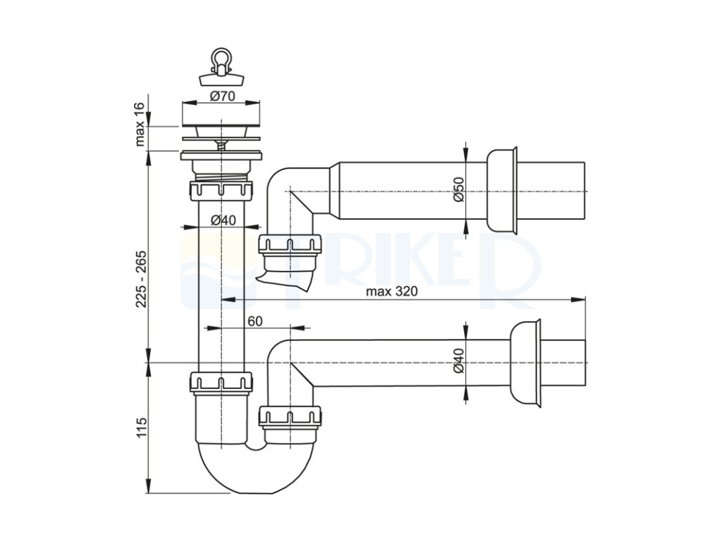 Sifon dřezový s výpustí A800 s nerezovou mřížkou 70 x 50 mm
