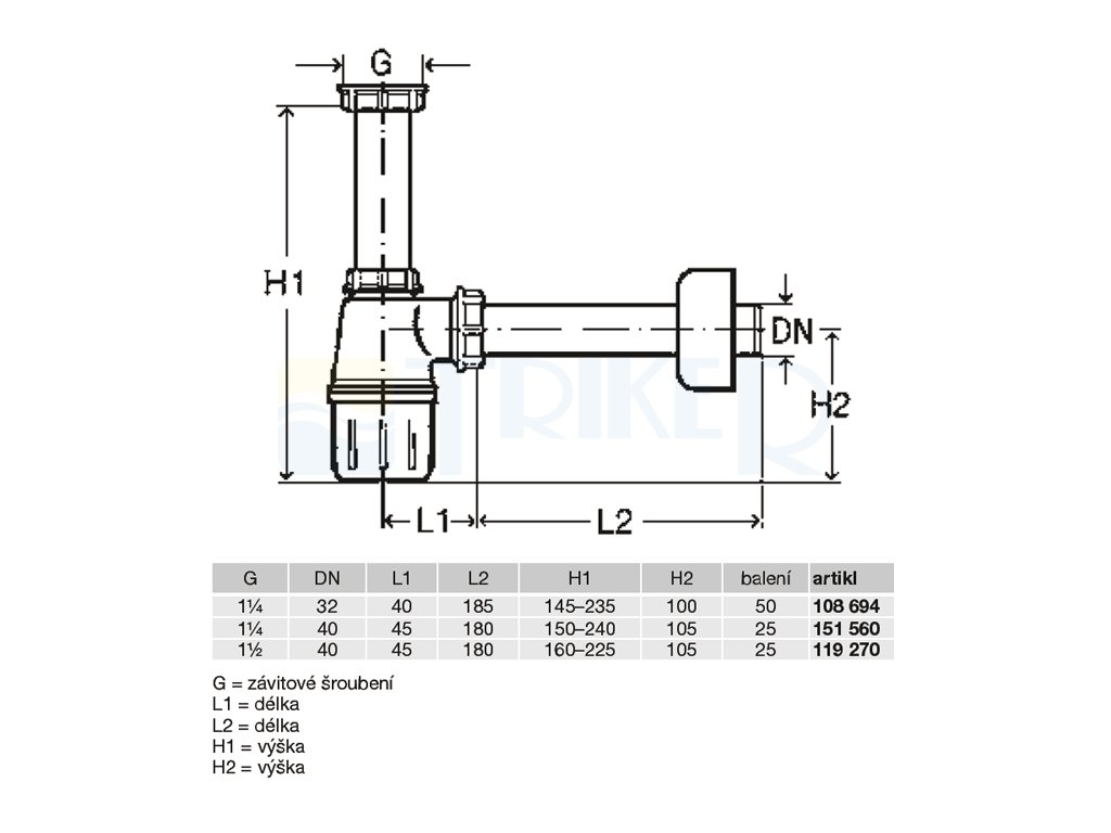 Sifon umyvadlový bez výpusti 5725 5/4" x 32 mm