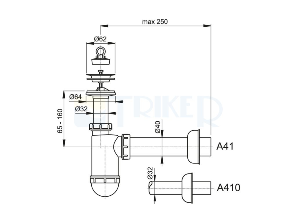 Sifon umyvadlový s výpustí A410 s nerezovou mřížkou 63 mm, odpad 32 mm