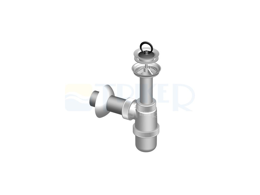 Sifon umyvadlový s výpustí P-957BC DN40 s nerezovou mřížkou, zátkou s očkem
