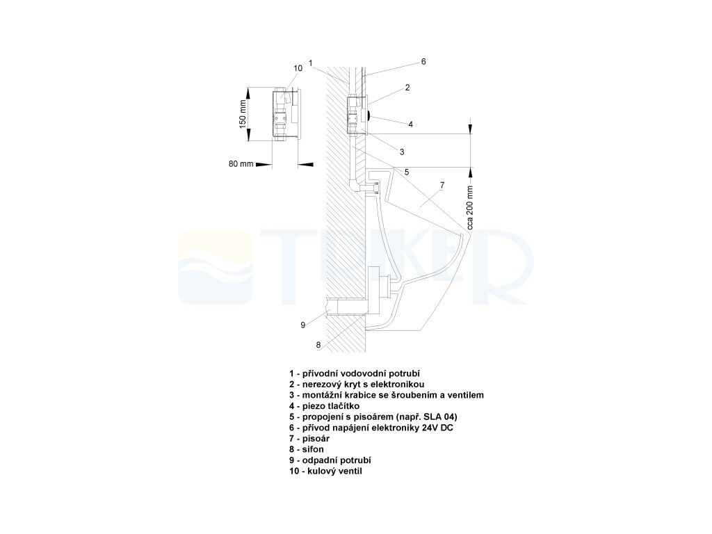 Sanela SLP 02PA pisoárový splachovač s elektronikou a piezo tlačítkem